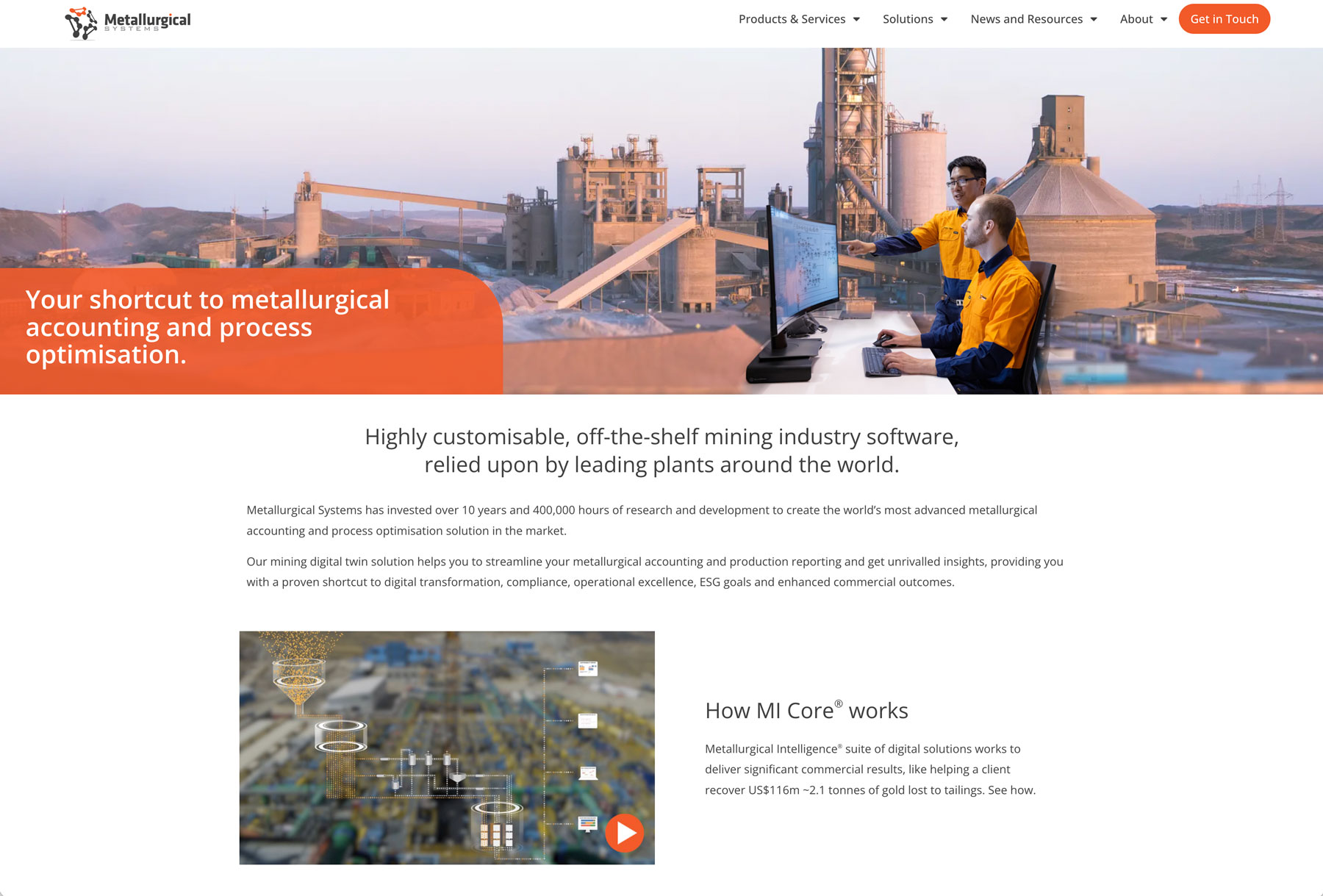 Metallurgical Systems is an Australian-based technology company with a market-leading digital twin solution for the global minerals and mining sector. Their platform helps plants harness their data to gain the insight and transparency needed to optimise production, end-to-end operations, environmental sustainability (including reporting) and commercial outcomes.